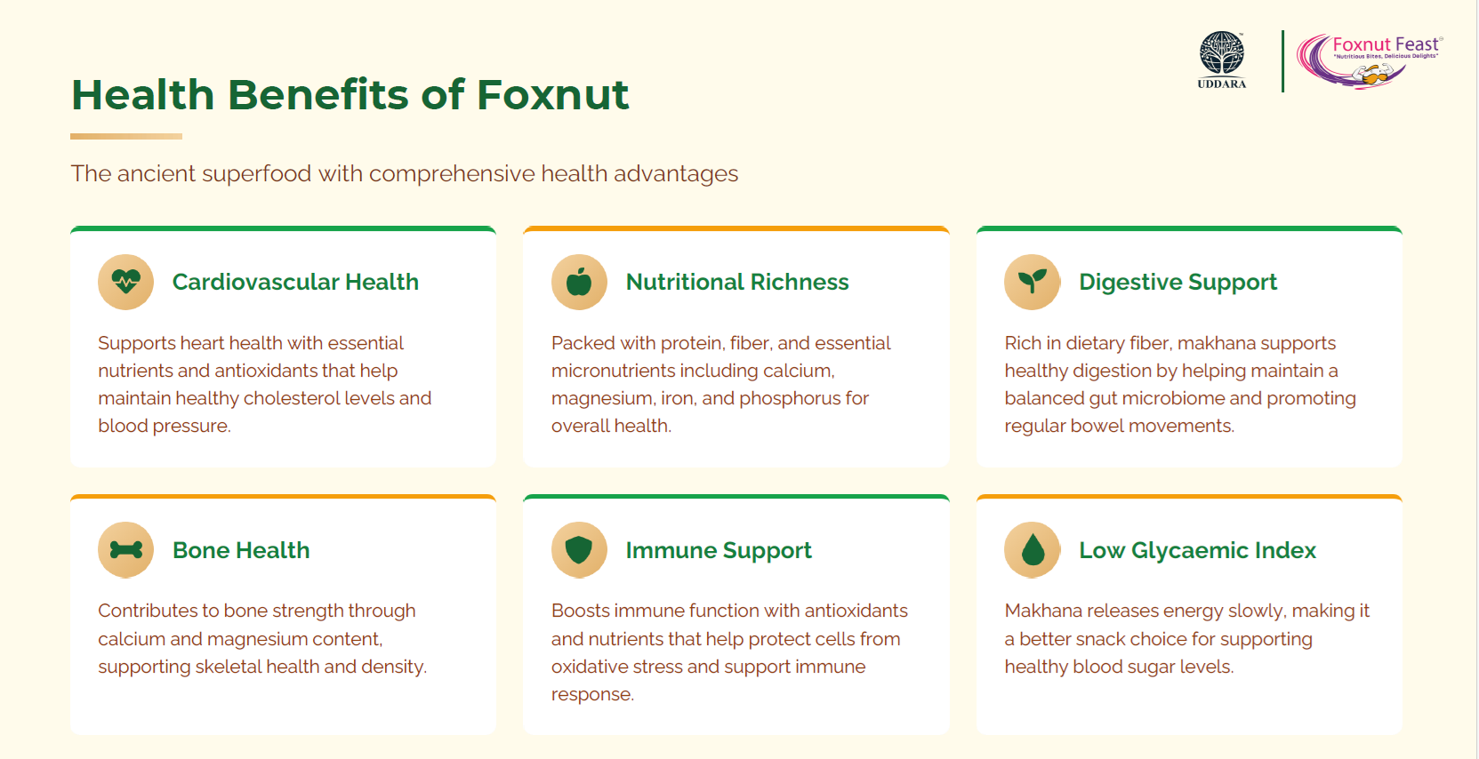 For generations, Makhana (Foxnut) has been valued in Ayurveda and Indian traditions as a Satvik superfood — pure, nourishing and suitable during fasting and poojas. Light on digestion and packed with nutrients, it is one of the most respected snacks across India.