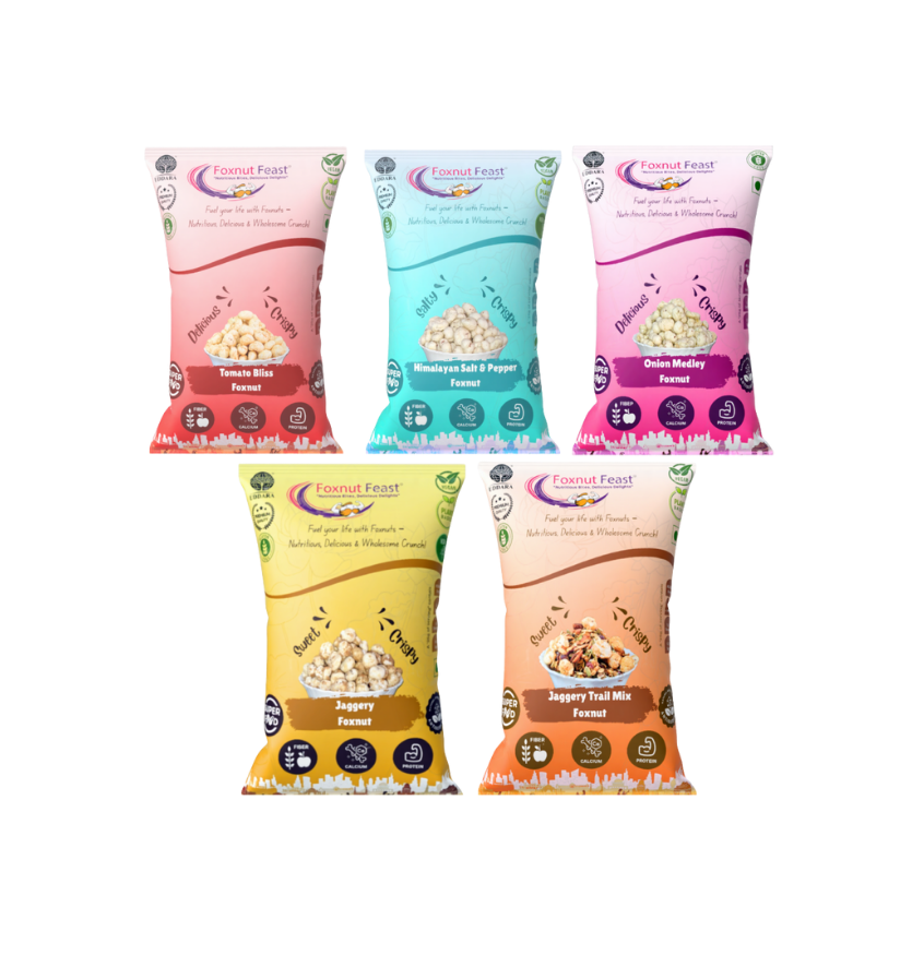 Experience the perfect balance of taste and mindful snacking with the Foxnut Feast 5-Flavour Premium Assorted Combo.