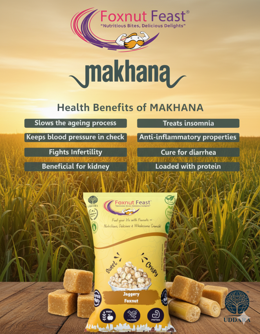 Foxnut Feast’s Jaggery Foxnuts are crafted for those who love flavour without compromise. We take handpicked, premium-quality makhana and gently coat them with golden, unrefined jaggery — keeping every ingredient clean, honest, and natural.