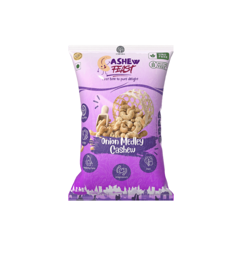Each cashew is roasted to perfection and coated with a smooth, flavourful onion mix that delivers a satisfying balance of creaminess and spice. The result is a snack that feels indulgent yet refined—perfect for any time you want something truly delicious.